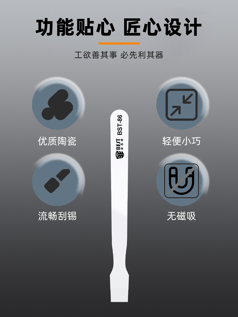 返回当前位置: 首页 / 产品中心 / BST-86 无磁陶瓷刮锡刀 无磁锡浆搅拌刀 铲刀 抹锡刀片 植锡搅拌刀