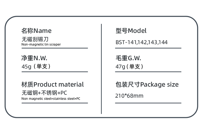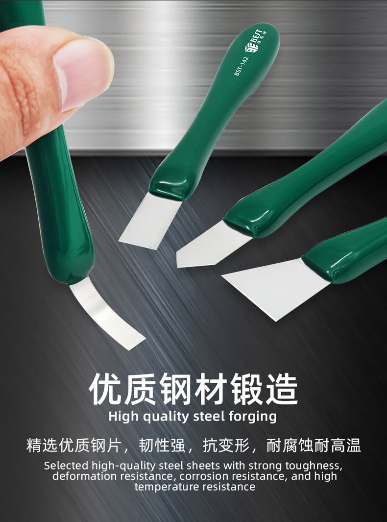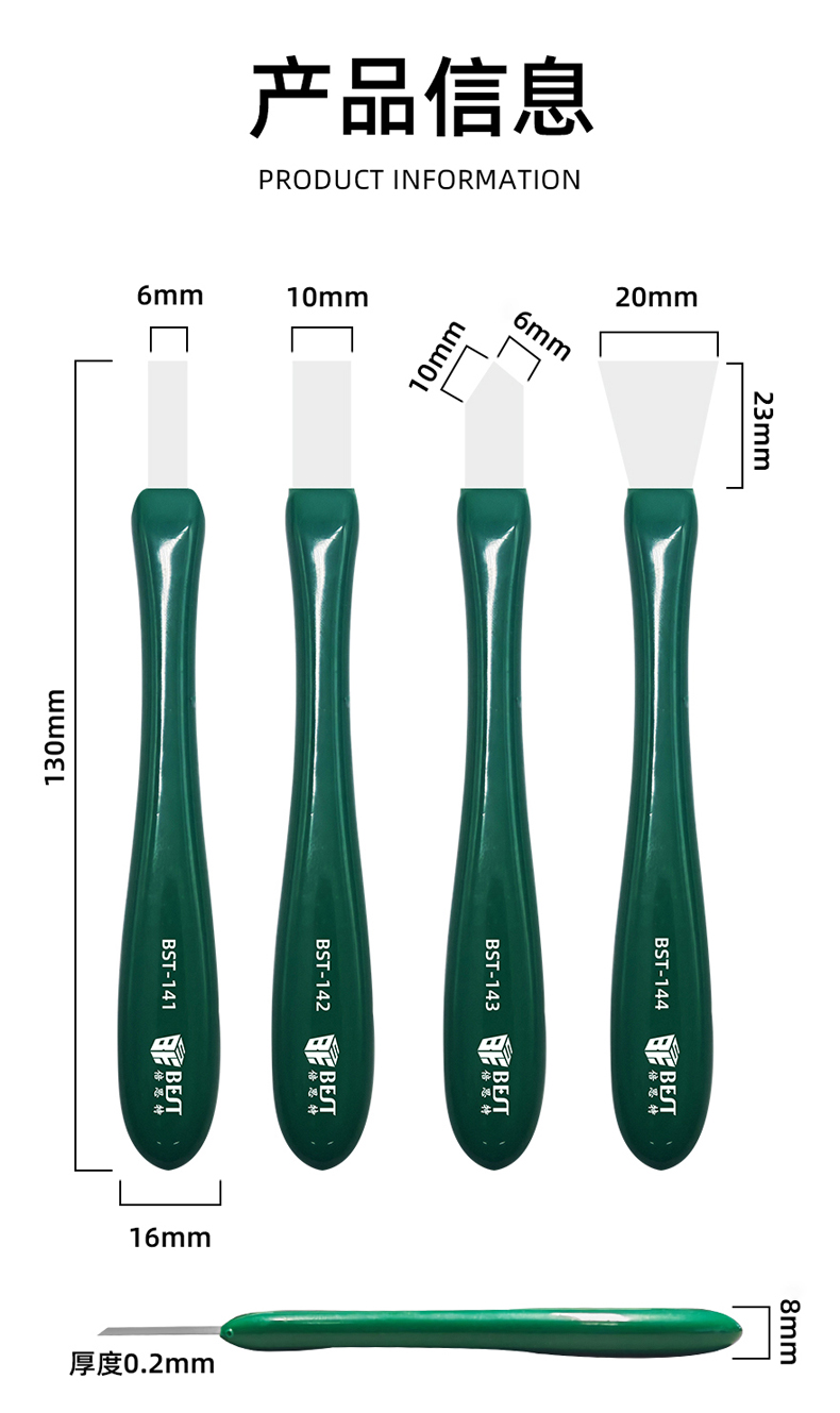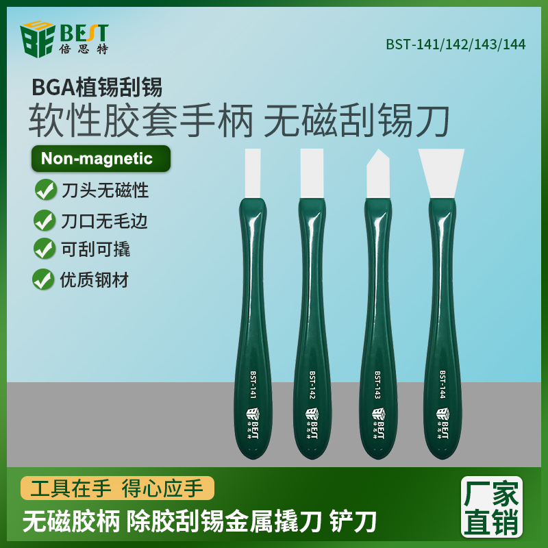 返回当前位置: 首页 / 产品中心 / BST-141/142/143/144 无磁刮锡刀 无磁胶柄除胶刮刀 超薄耐高温防锈防腐工具撬刀 锡浆搅拌BGA撬刀