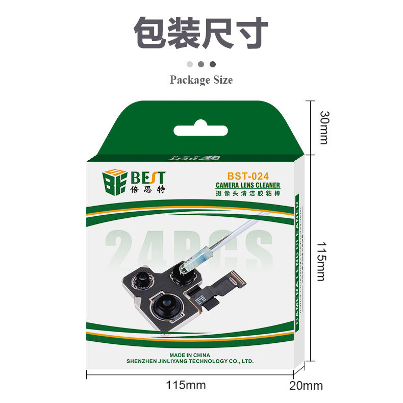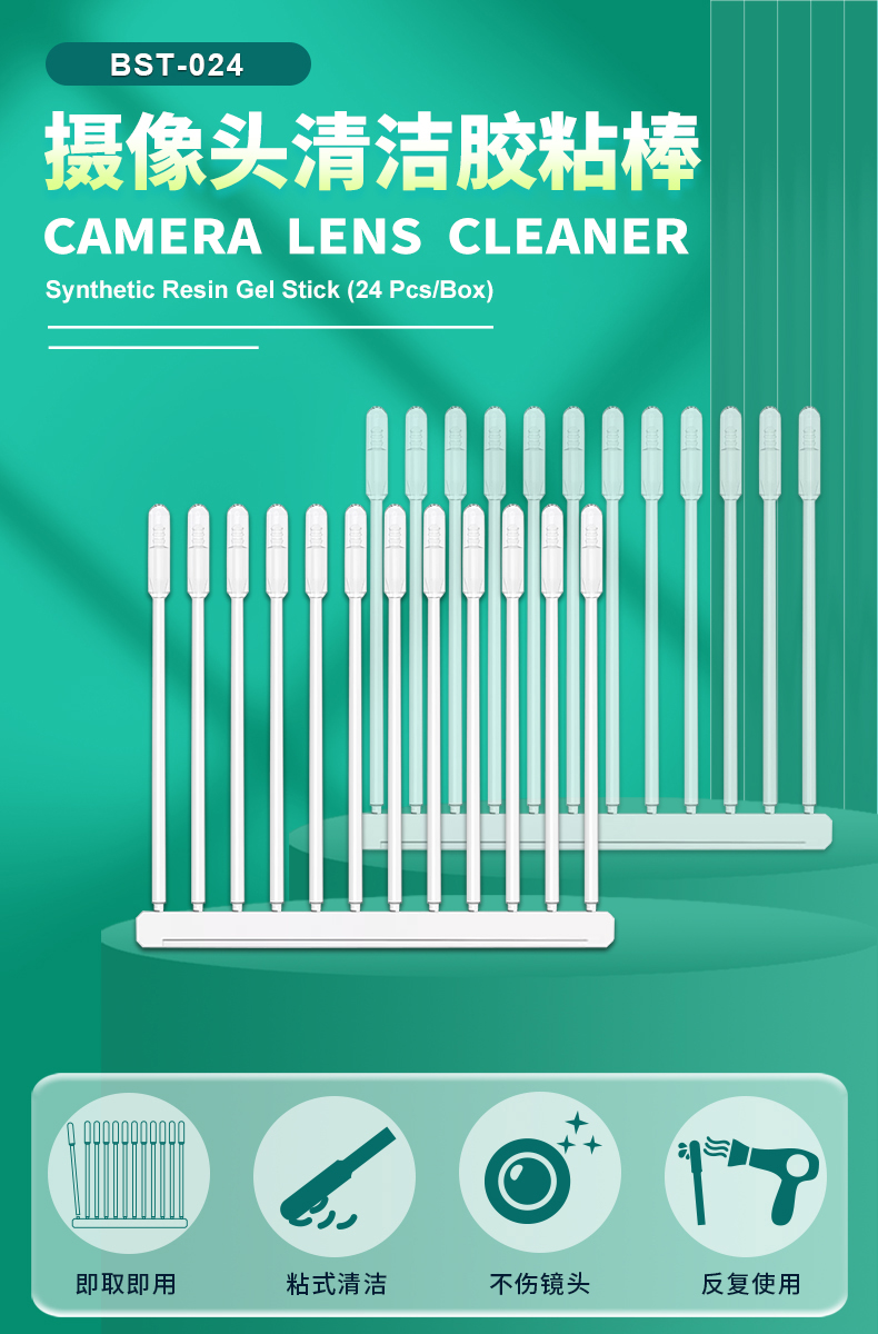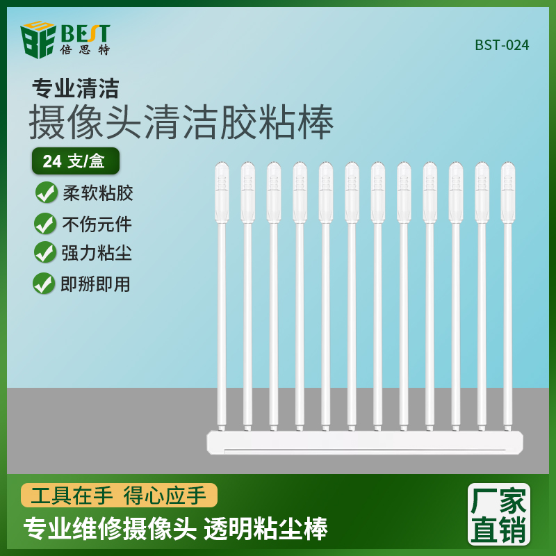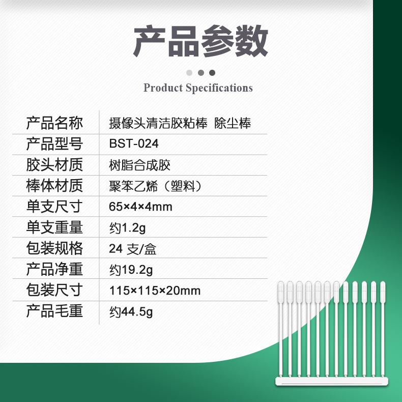 ? 产品名称: 摄像头清洁胶粘棒? 产品型号: BST-024? 产品规格: 1盒24支? 产品类别: 清洁类系列