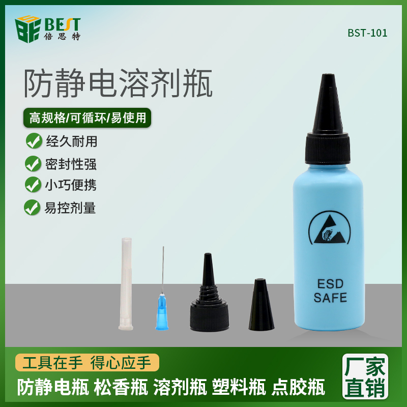 返回当前位置: 首页 / 产品中心 / BST-101 防静电溶剂瓶 防静电瓶 酒精瓶 松香瓶溶剂瓶 塑料瓶 防静电针头瓶 点胶瓶