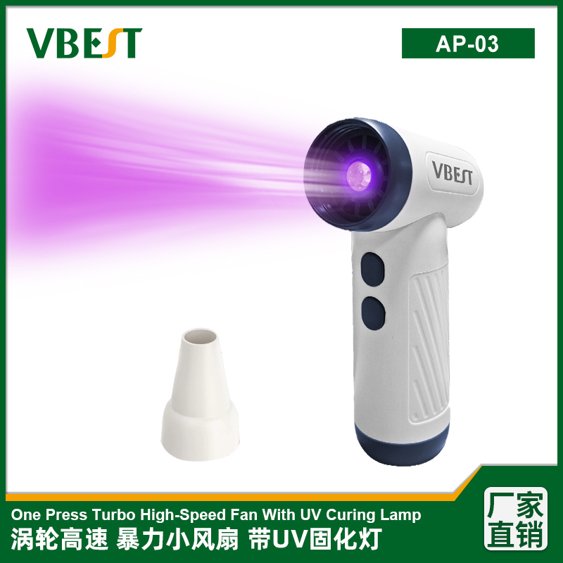 返回当前位置: 首页 / 产品中心 / AP-03 涡轮高速暴力小风扇 带UV固化灯 涡轮暴力固化灯风扇 便携式高速风扇 高速吹风机 手持式吹风筒 强风暴力涡轮风扇