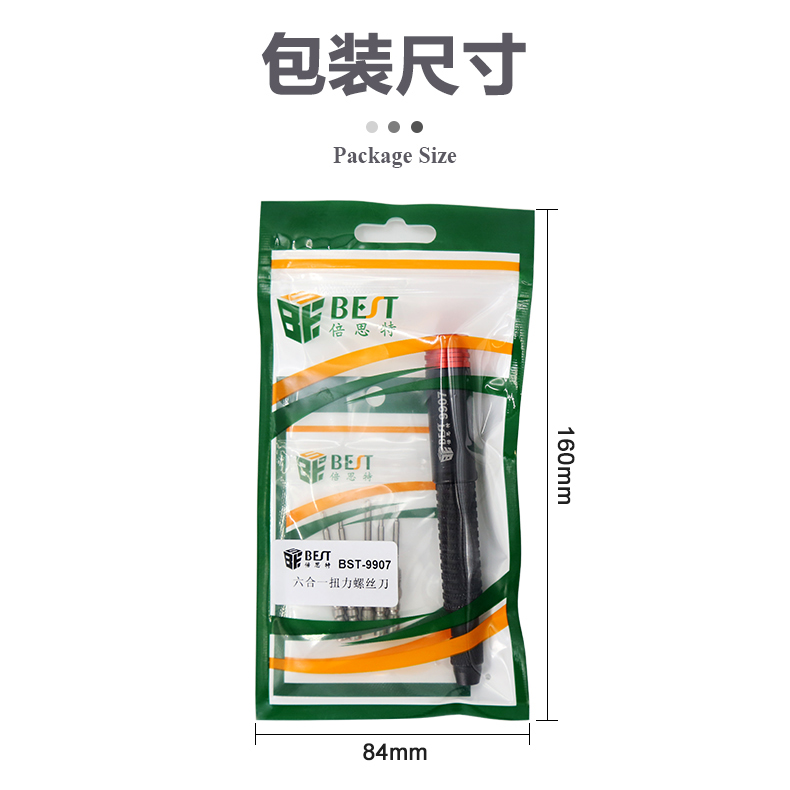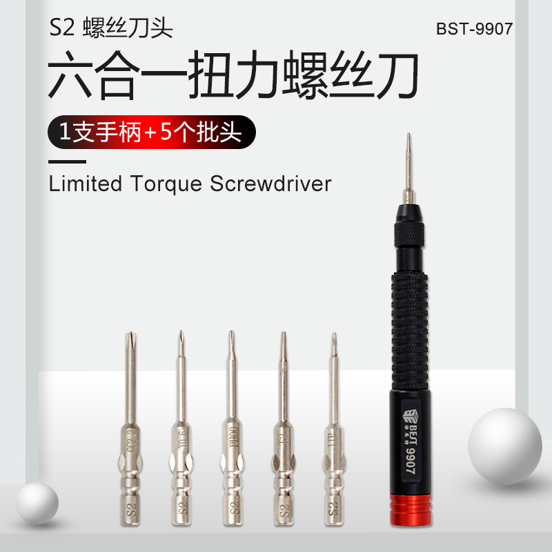 ? 产品名称: 六合一扭力螺丝刀套装? 产品型号: BST-9907? 产品类别: 套批系列