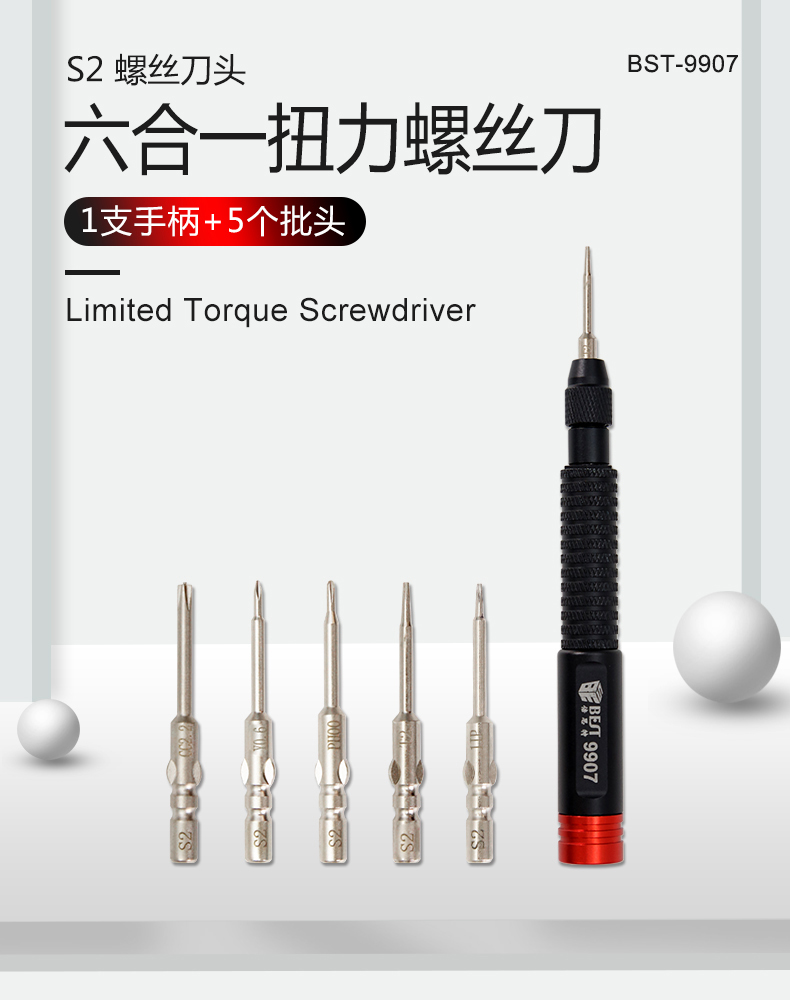 返回当前位置: 首页 / 产品中心 / BST-9907 六合一扭力螺丝刀套装 可换头固定扭矩螺丝批