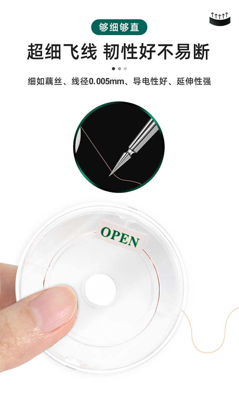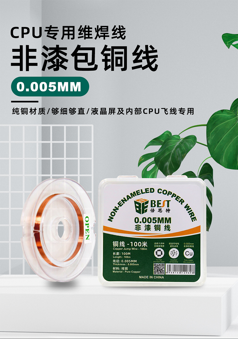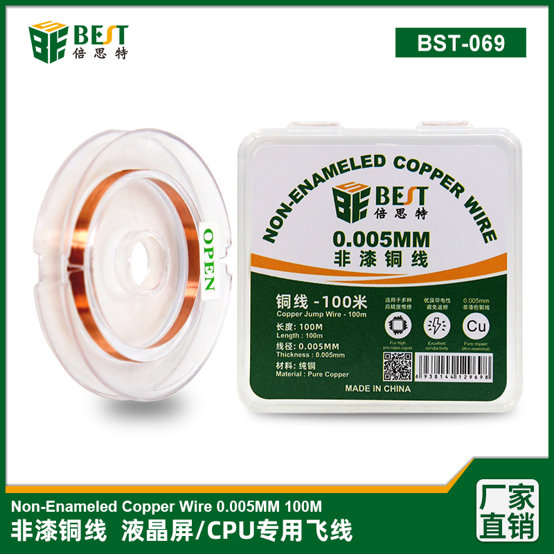 返回当前位置: 首页 / 产品中心 / BST-069 非漆铜线 0.005mm 液晶屏修复CPU内部飞线专用 手机维修主板焊盘掉点CPU补点0.005mm非漆包铜线
