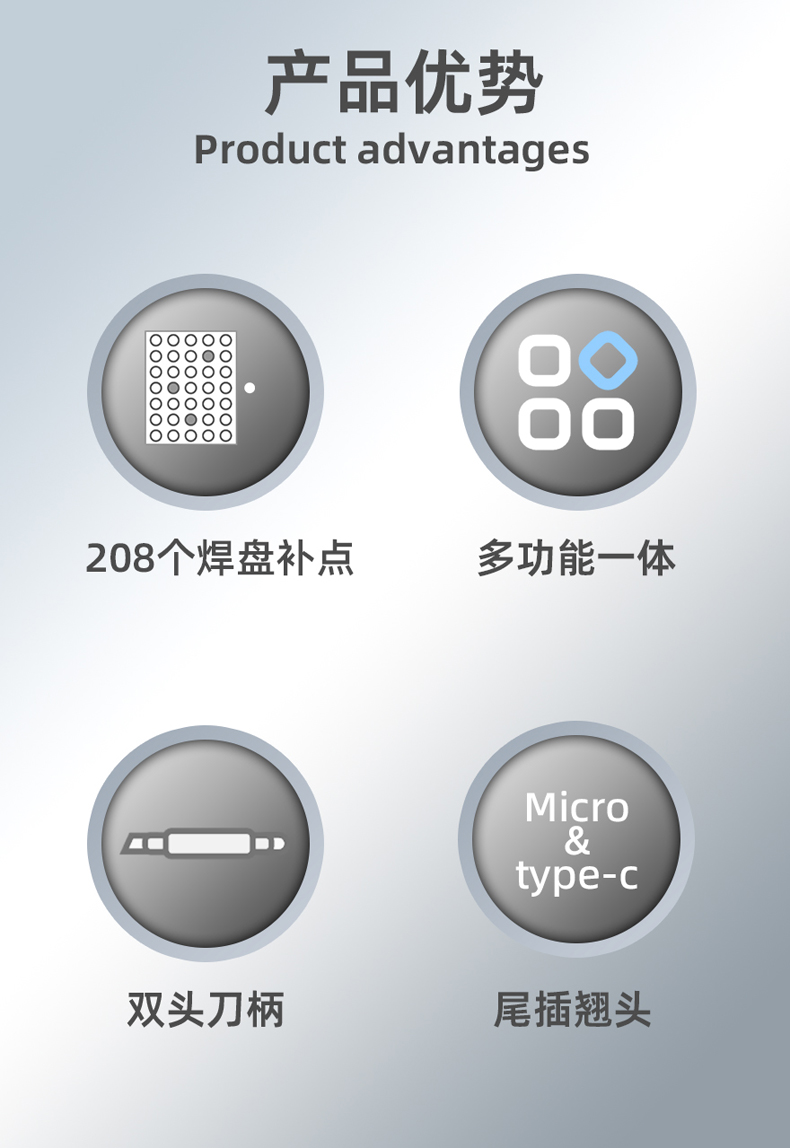 返回当前位置: 首页 / 产品中心 / BST-85 多功能手工笔刻刀套装 主板芯片除胶除锡焊盘清洁无痕修复飞线补点套装