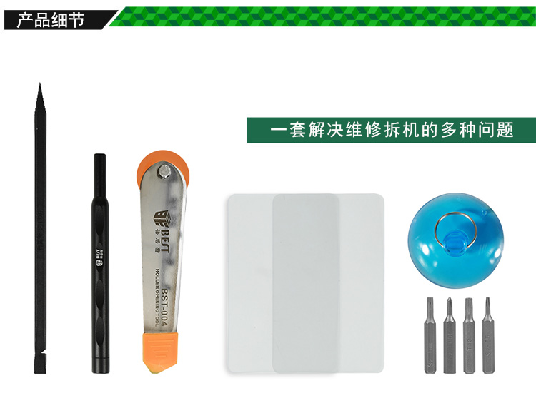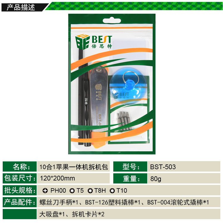 ? 产品名称: 10合1 苹果一体机拆机包? 产品型号: BST-503? 产品类别: 拆机工具系列