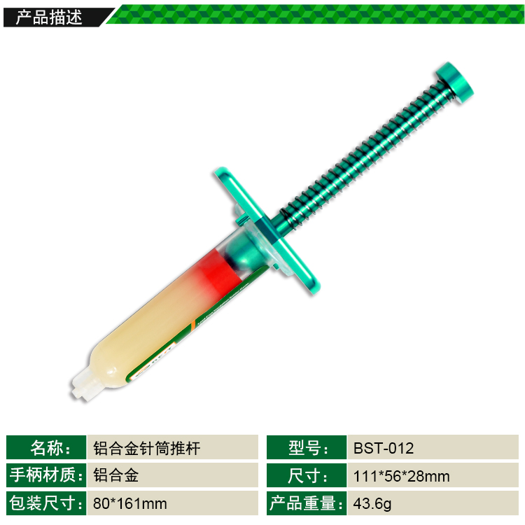 ? 产品名称: 铝合金针筒助推杆? 产品型号: BST-012? 产品类别: 锡浆焊油系列