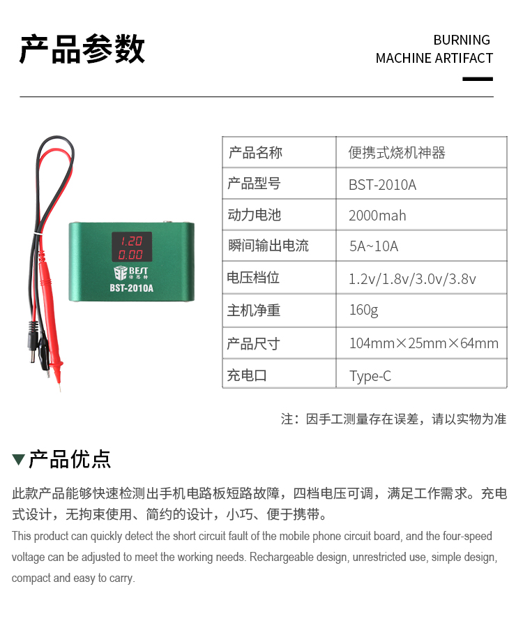 返回当前位置: 首页 / 产品中心 / BST-2010A 烧机神器 四档可调10A电流快速锁定超长待机三位数显 超便携防烧主板修复手机电脑主板短路检测器