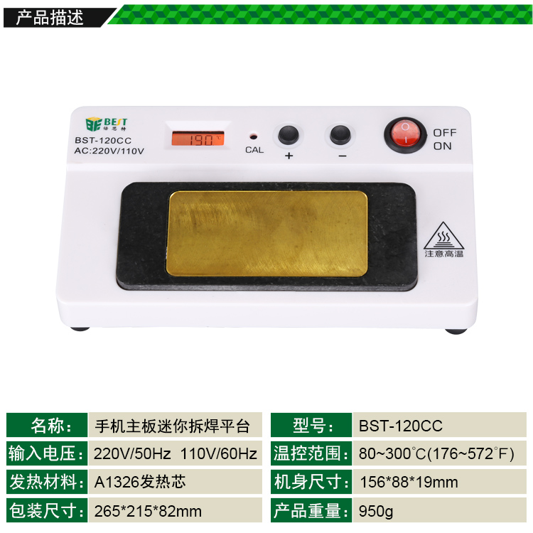 ? 产品名称: 安卓手机主板维修专用加热台? 产品型号: BST-120CC? 产品类别: 加热台系列