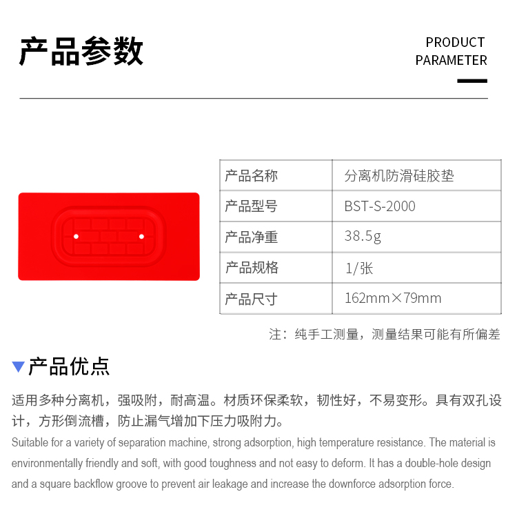 ? 产品名称: 分离机防滑耐高温硅胶垫? 产品型号: BST-S-2000? 产品类别: 硅胶垫系列