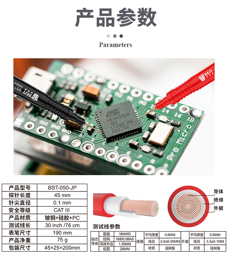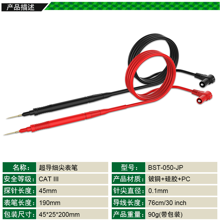? 产品名称: 超导细尖表笔? 产品型号: BST-050-JP? 产品类别: 表笔线系列