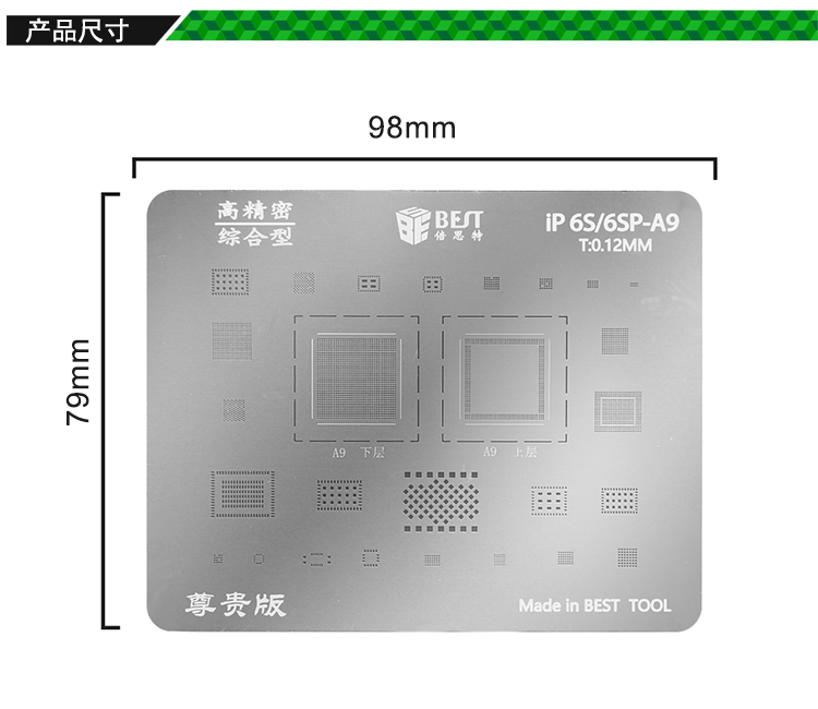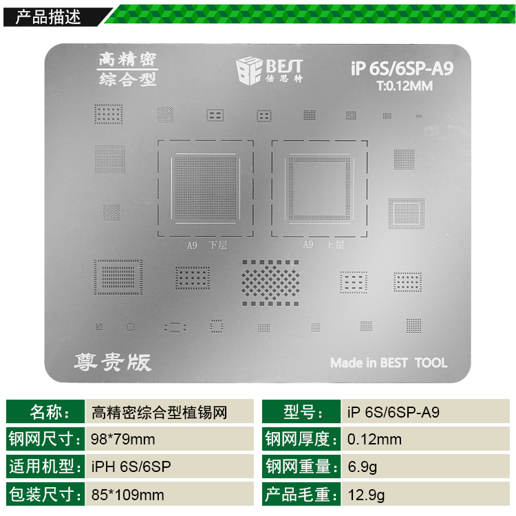 ? 产品名称: BGA植锡网? 产品型号: iP 6S/6SP-A9? 产品类别: 植锡网系列