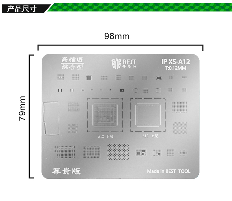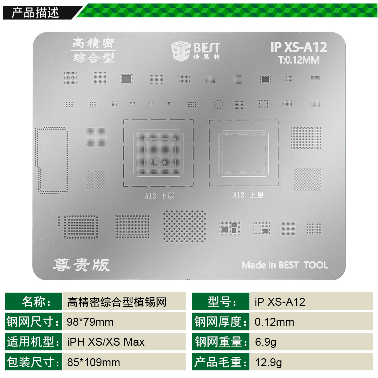 ? 产品名称: BGA植锡网? 产品型号: iP XS-A12? 产品类别: 植锡网系列