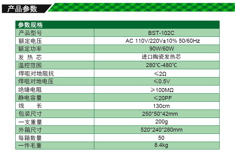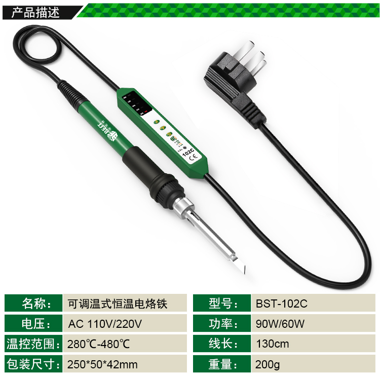 ? 产品名称: 可调温式恒温电烙铁? 产品型号: BST-102C? 产品类别: 电烙铁系列