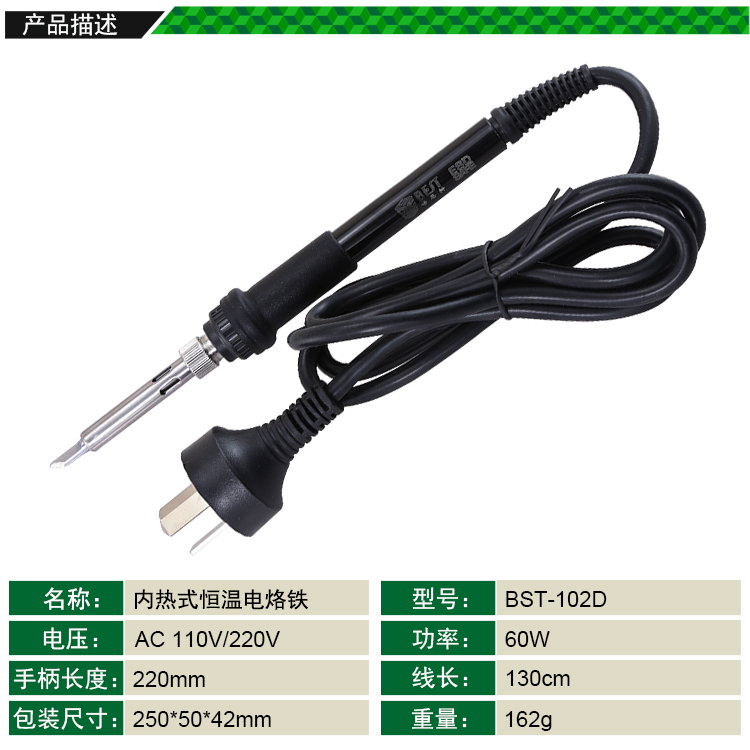 ? 产品名称: 内热式恒温电烙铁? 产品型号: BST-102D? 产品类别: 电烙铁系列