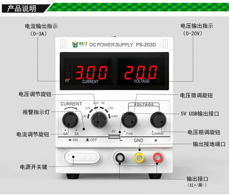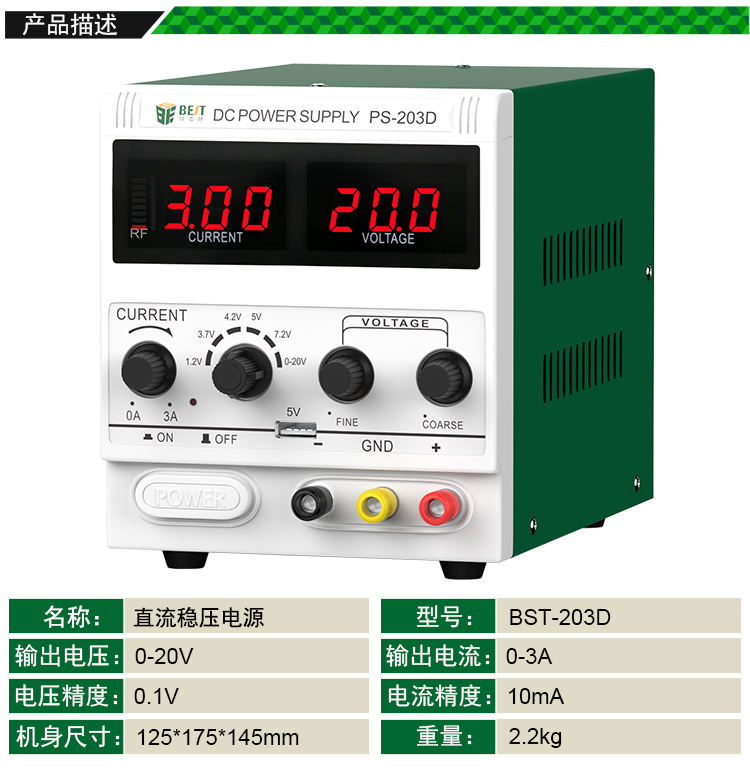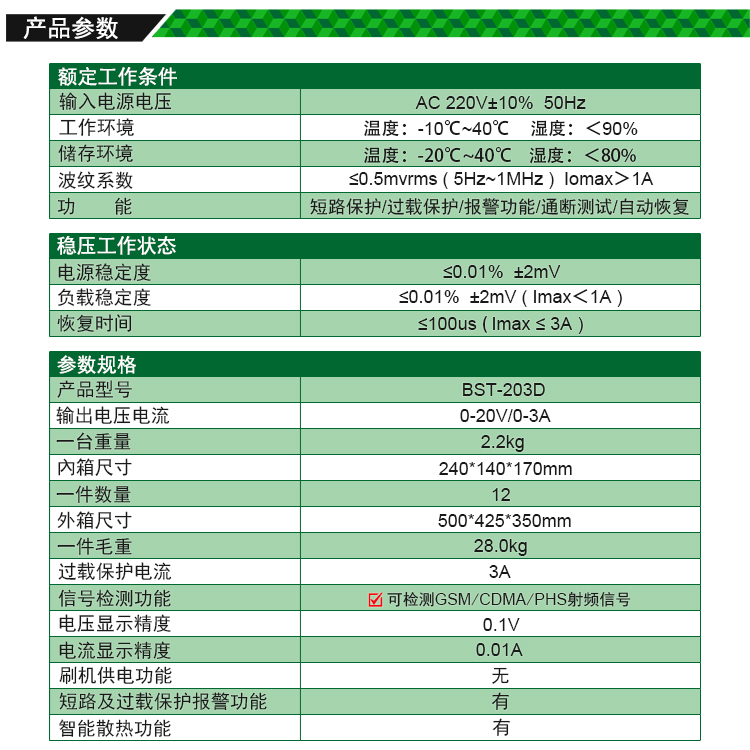 ? 产品名称: 直流稳压电源? 产品型号: BST-203D? 产品类别: 直流电源系列