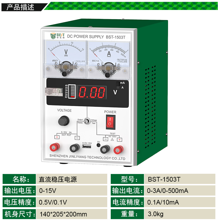 ? 产品名称: 直流稳压电源? 产品型号: BST-1503T? 产品类别: 直流电源系列