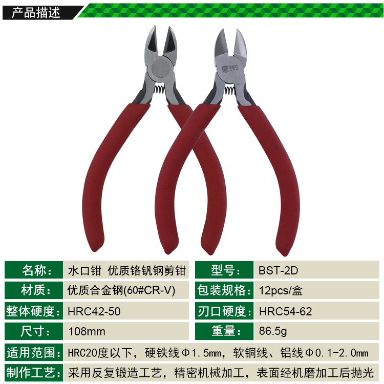 ? 产品名称: 水口钳? 产品型号: BST-2D? 产品类别: 钳子系列