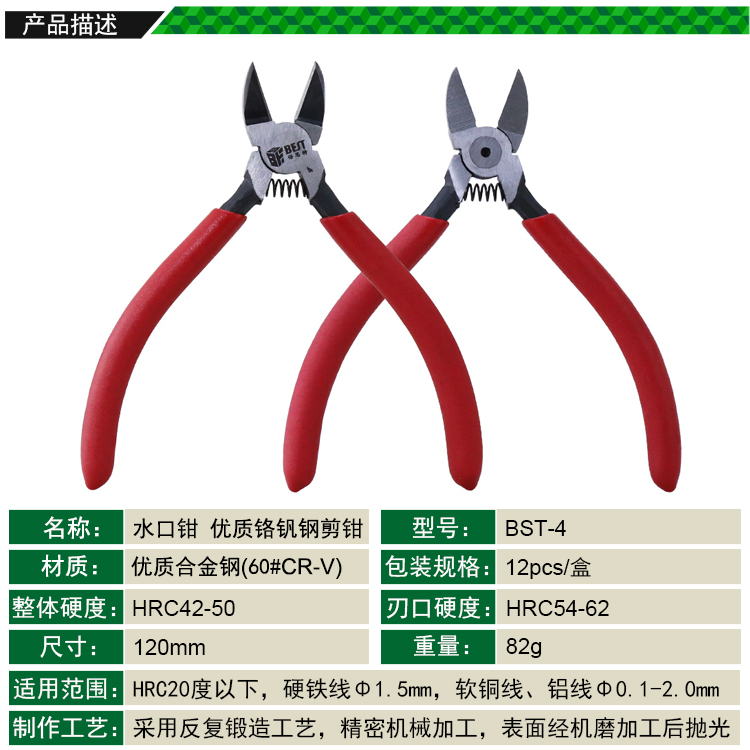 ? 产品名称: 水口钳? 产品型号: BST-4? 产品类别: 钳子系列