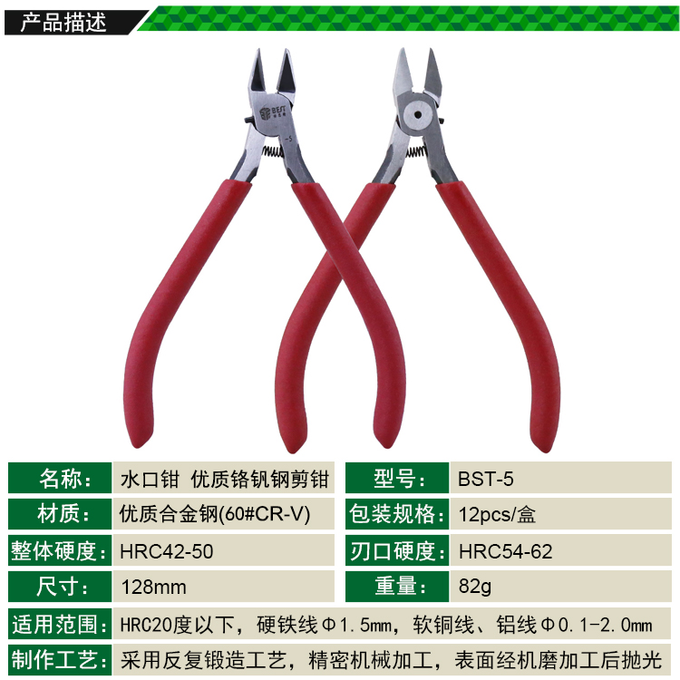 ? 产品名称: 水口钳? 产品型号: BST-5? 产品类别: 钳子系列