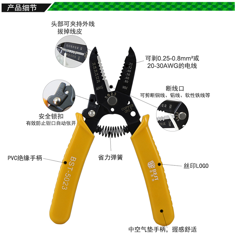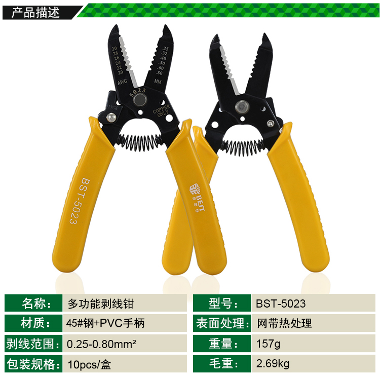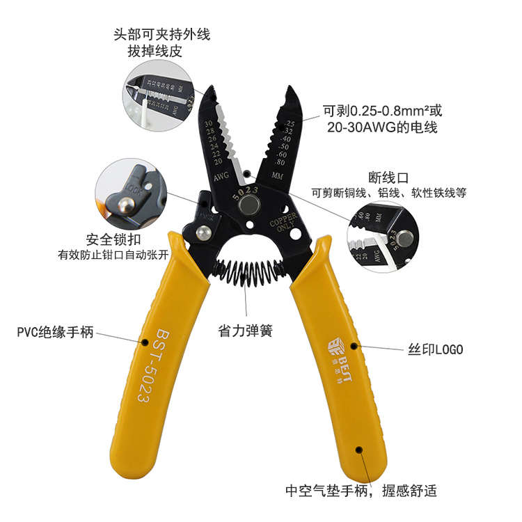 ? 产品名称: 剥线钳 电线钳 多功能剥线钳? 产品型号: BST-5023? 产品类别: 钳子系列