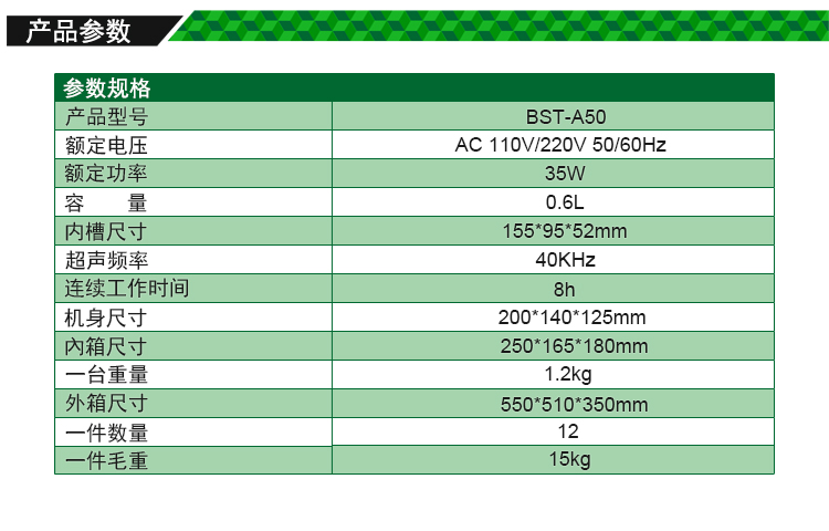 ? 产品名称: 超声波清洗机? 产品型号: BST-A50? 产品类别: 超声波清洗器系列