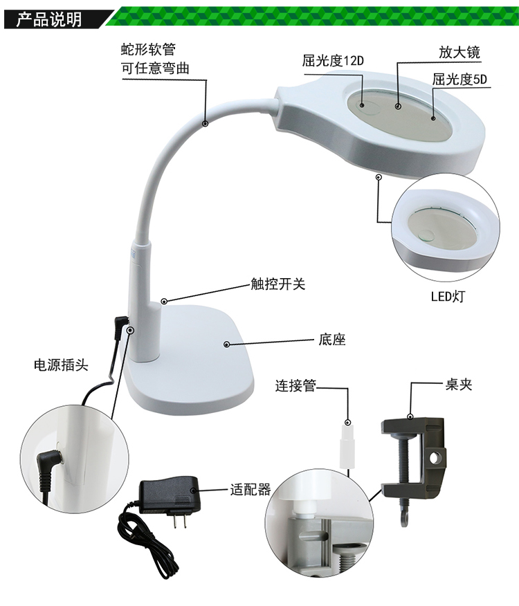 ? 产品名称: 白色LED放大镜台灯? 产品型号: BST-9145? 产品类别: 放大镜台灯系列