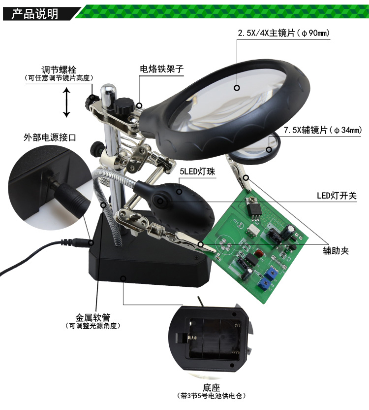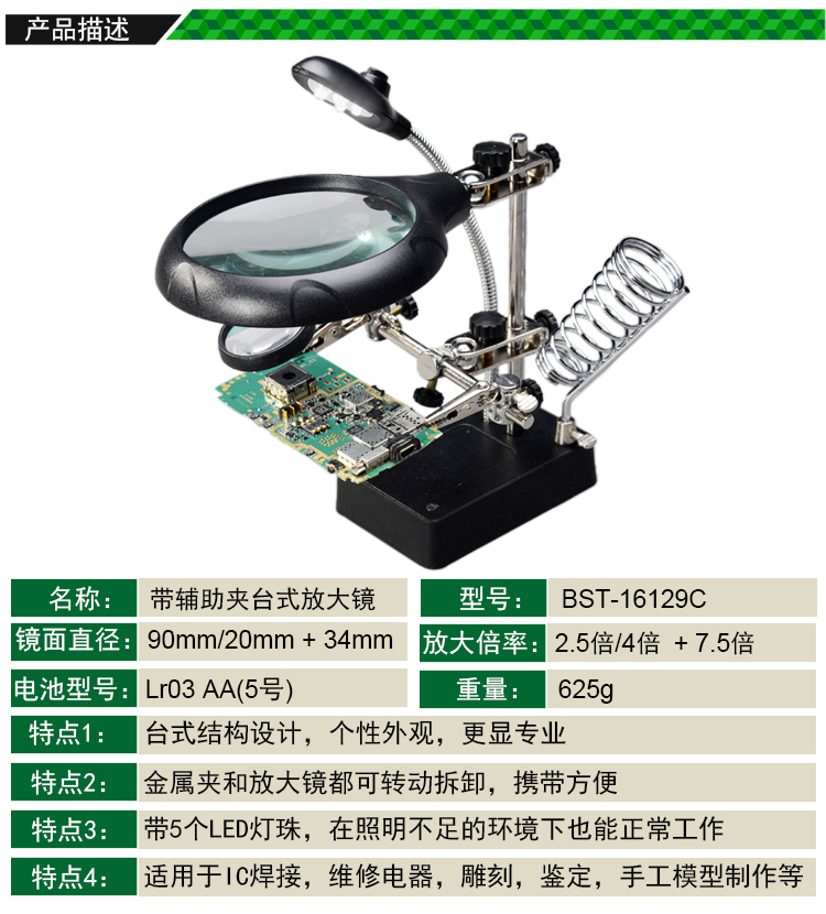 返回当前位置: 首页 / 产品中心 / BST-16129C 带辅助夹台式放大镜 焊接放大镜