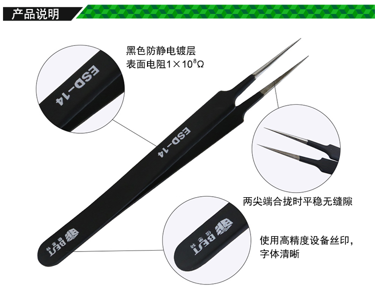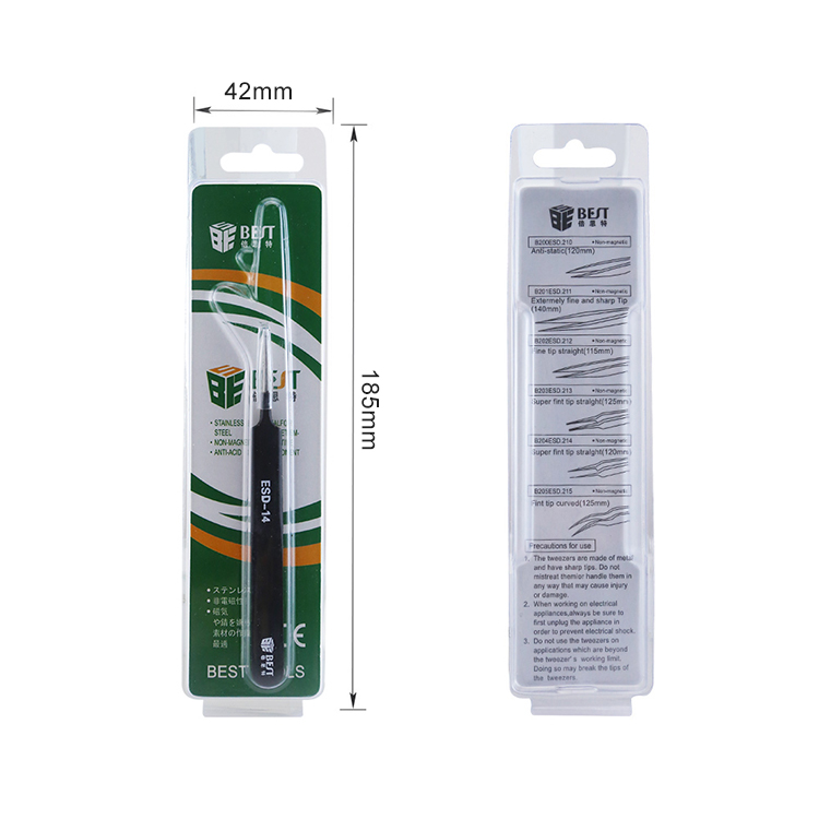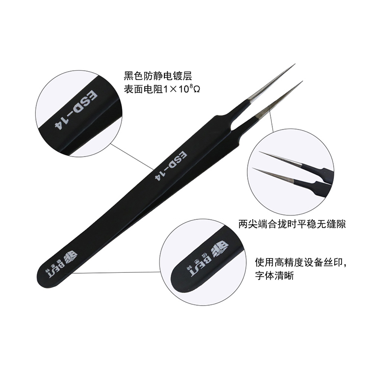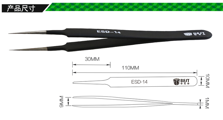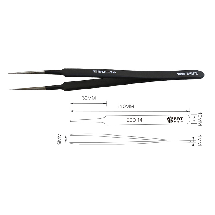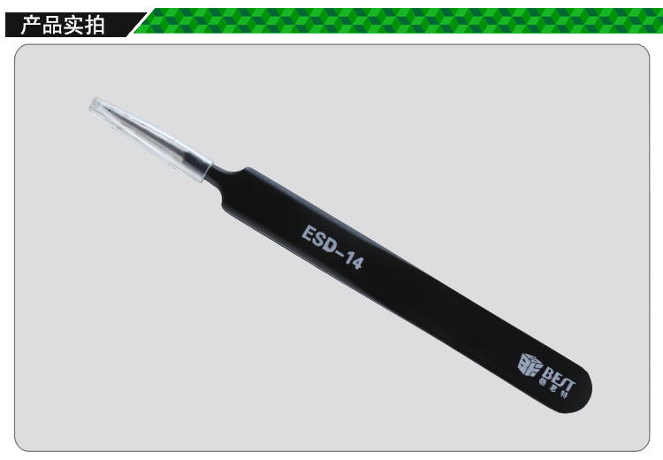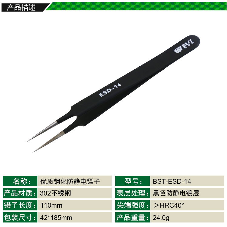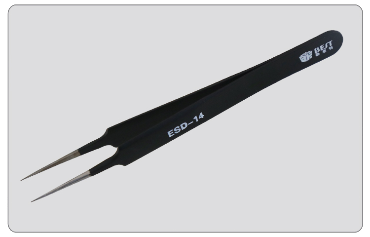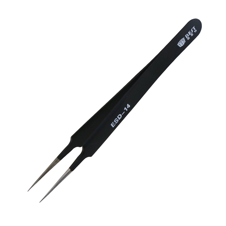 ? 产品名称: 优质钢化高级防静电镊子? 产品型号: BST-ESD-14? 产品类别: 镊子系列
