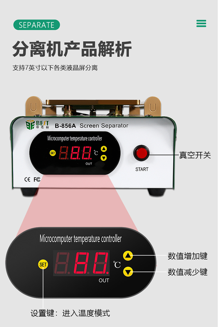 返回当前位置: 首页 / 产品中心 / BST-B-856A 真空分离机 液晶屏幕分离机 手机屏幕分离机内置真空泵拆屏机苹果安卓加热台
