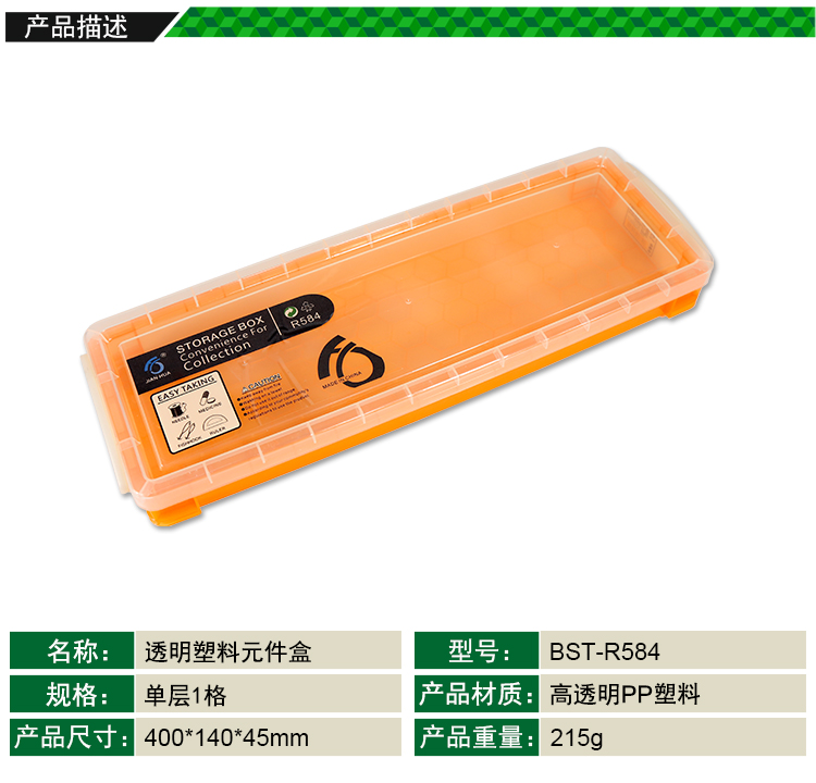 ? 产品名称: 透明塑料元件盒 收纳盒? 产品型号: BST-R584? 产品类别: 元件盒系列