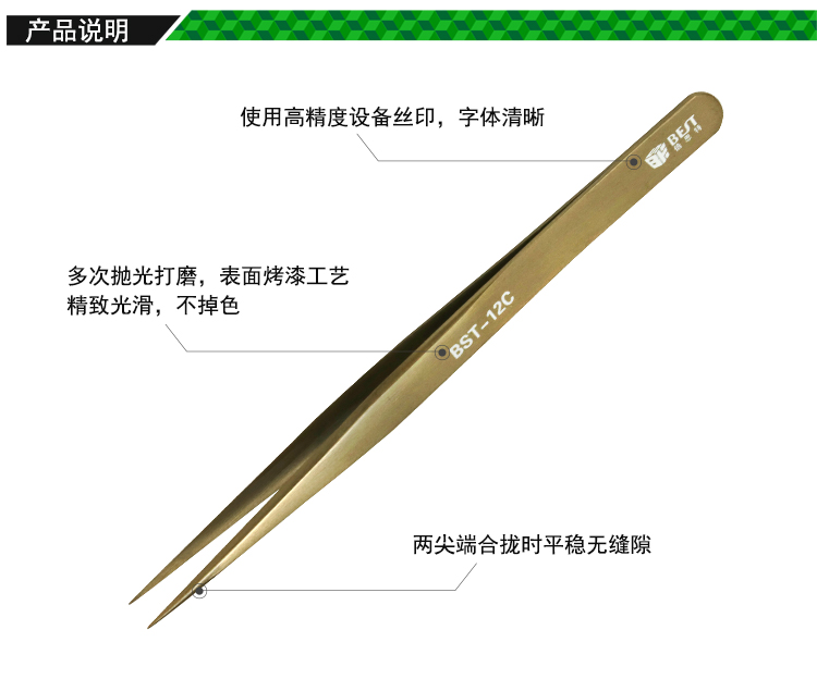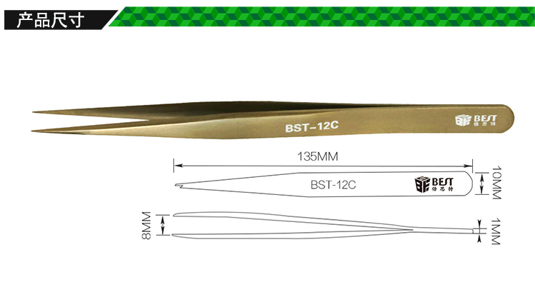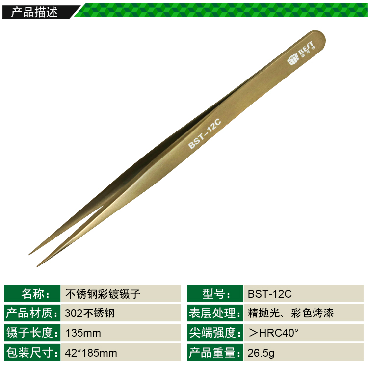 ? 产品名称: 彩色镊子 不锈钢彩镀镊子? 产品型号: BST-12C? 产品类别: 镊子系列