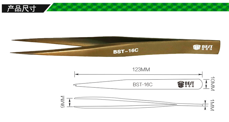 ? 产品名称: 彩色镊子 不锈钢彩镀镊子? 产品型号: BST-16C? 产品类别: 镊子系列