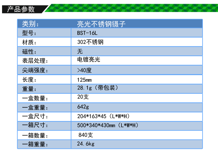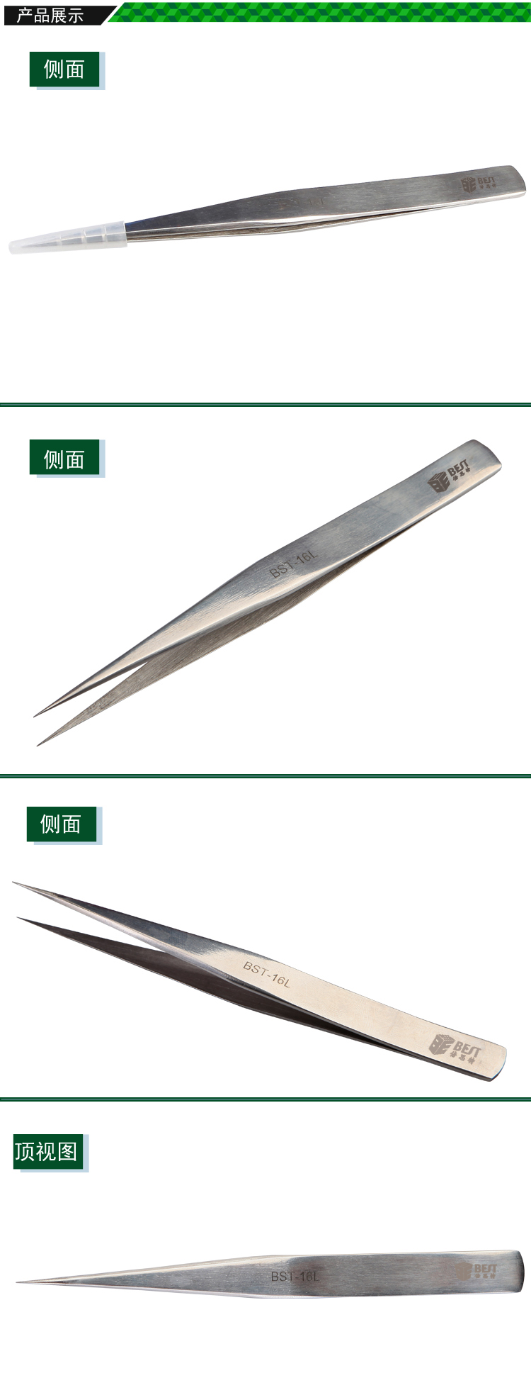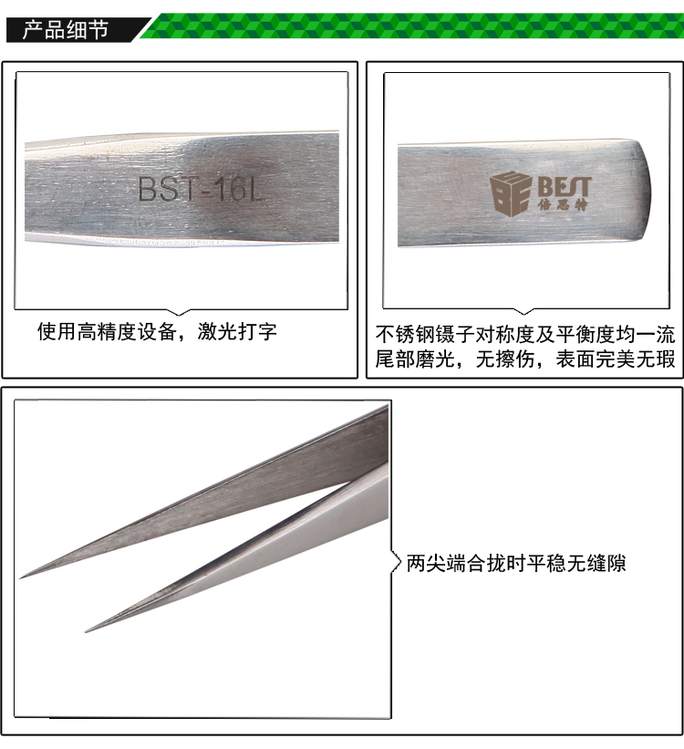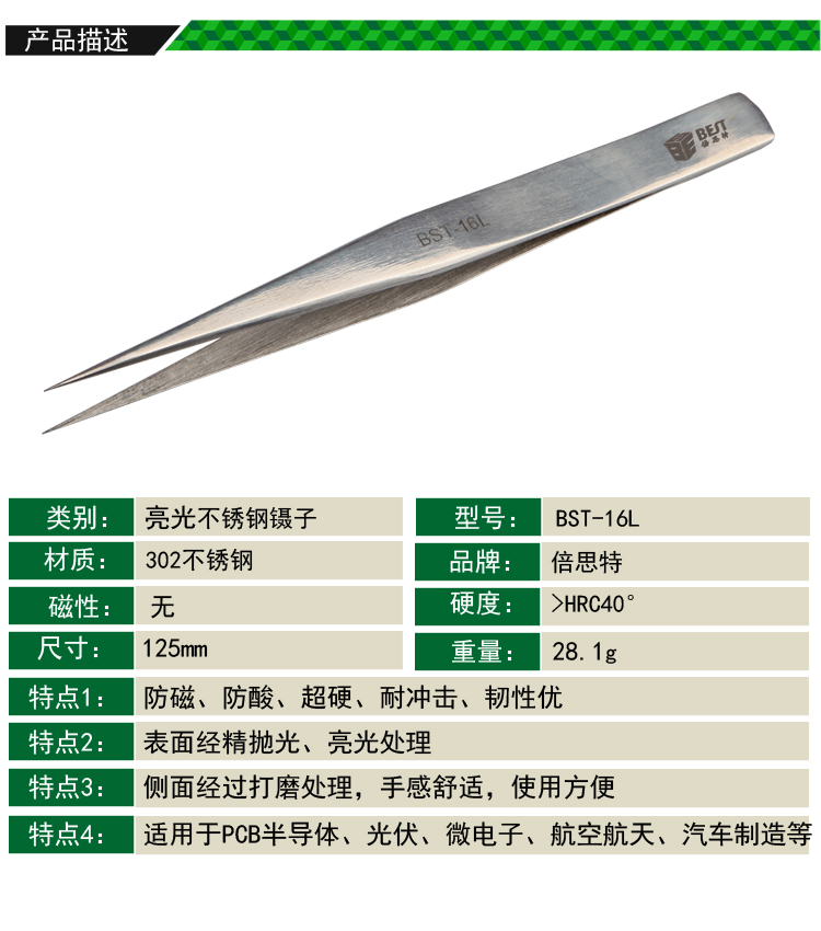 ? 产品名称: 亮光镊子 不锈钢镊子? 产品型号: BST-16L? 产品类别: 镊子系列