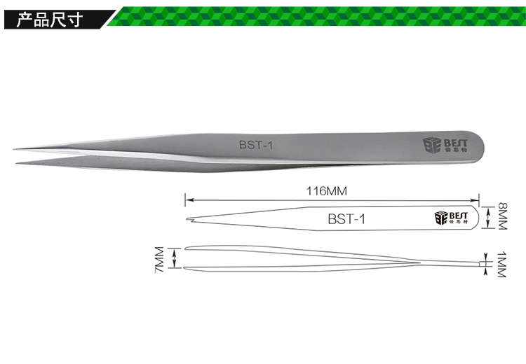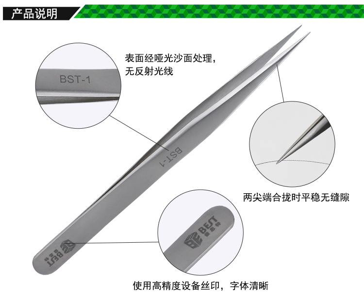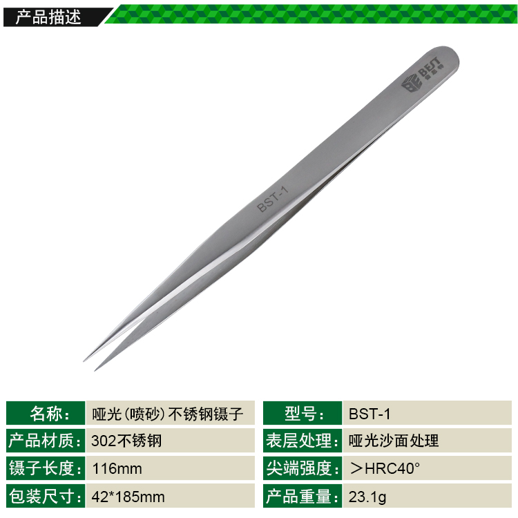 ? 产品名称: 亚光镊子 不锈钢镊子? 产品型号: BST-1? 产品类别: 镊子系列