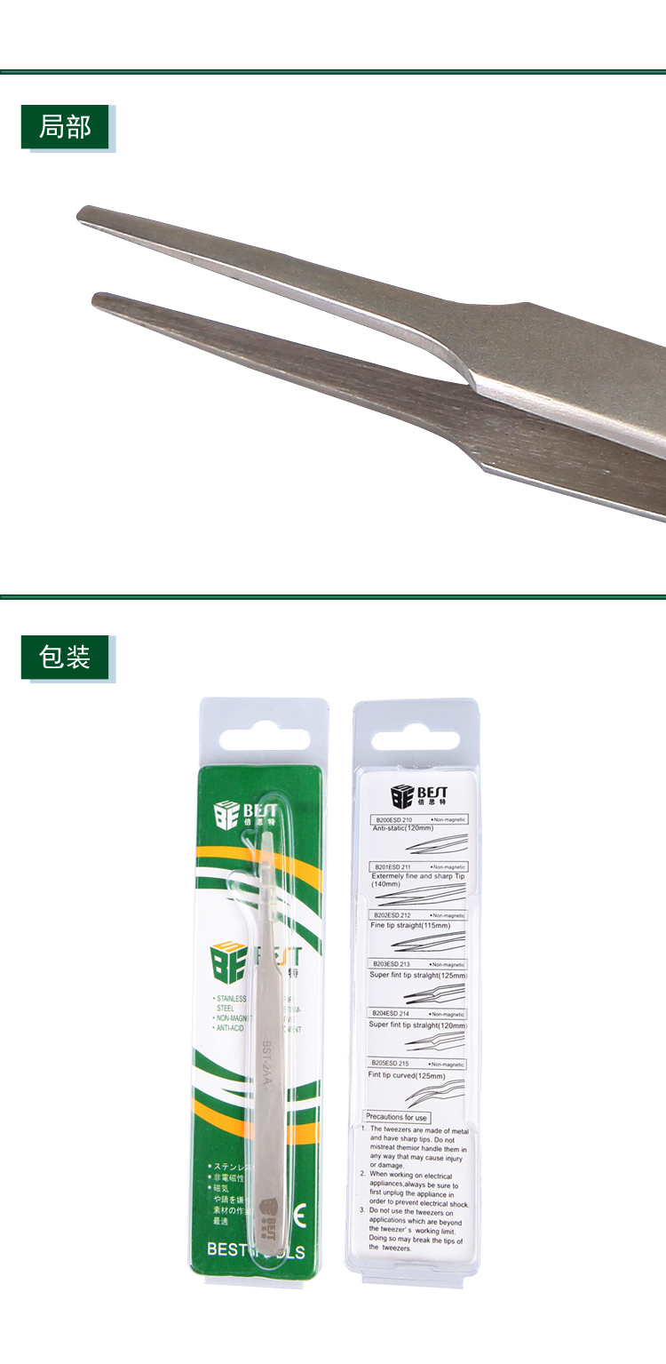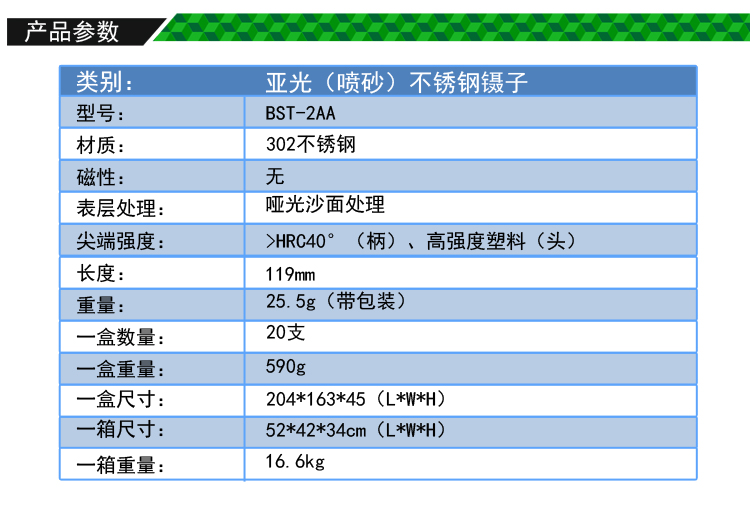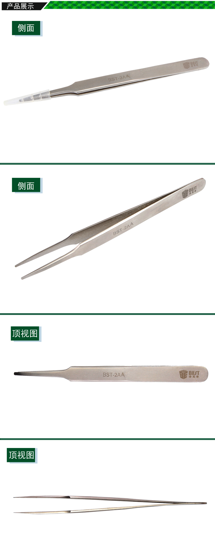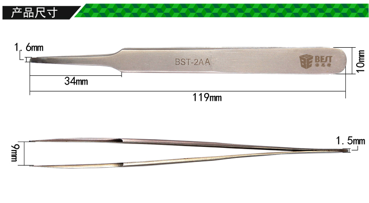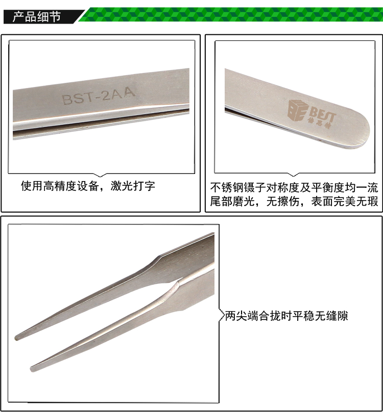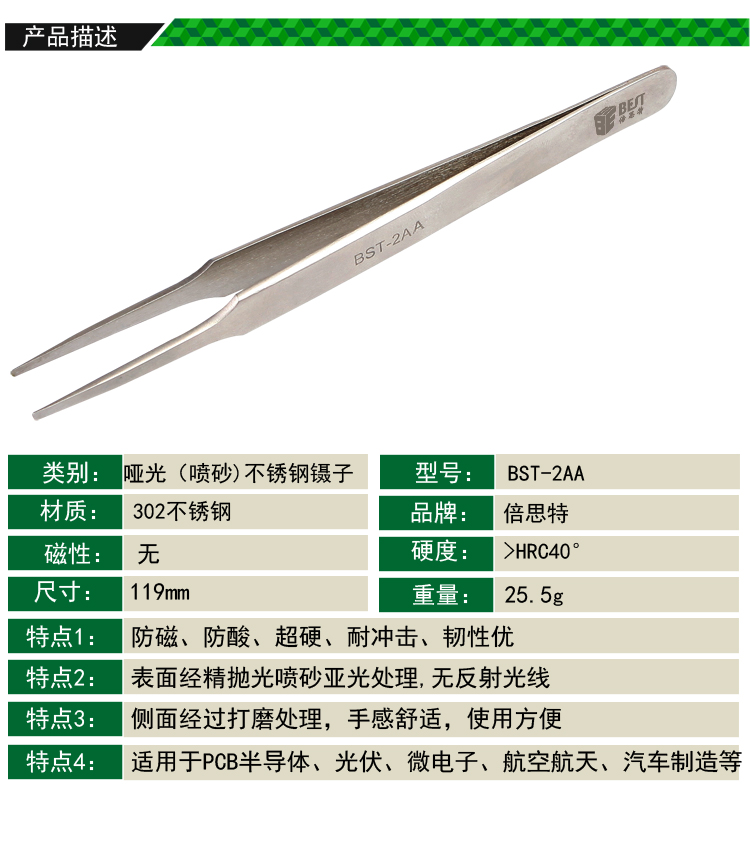 ? 产品名称: 亚光镊子 不锈钢镊子? 产品型号: BST-2AA? 产品类别: 镊子系列