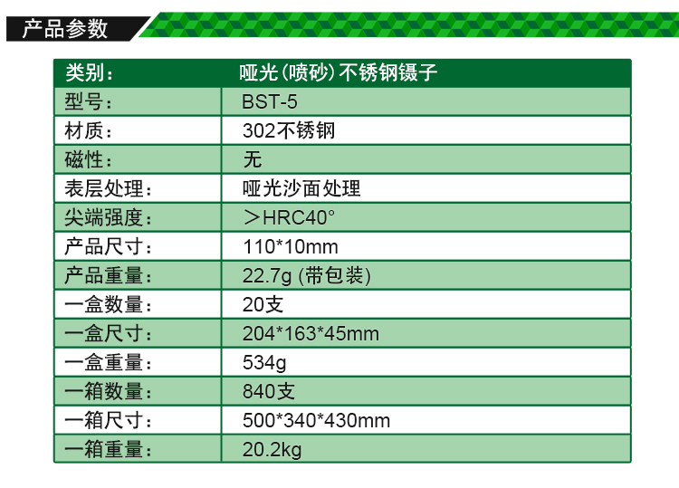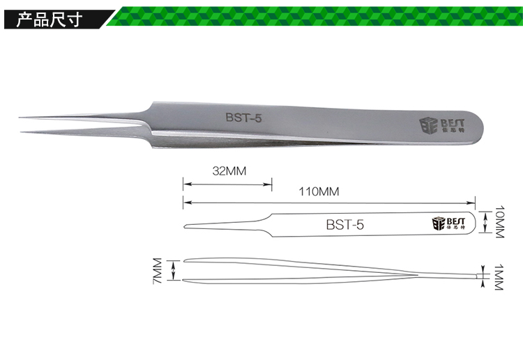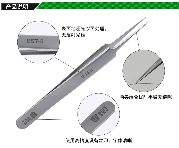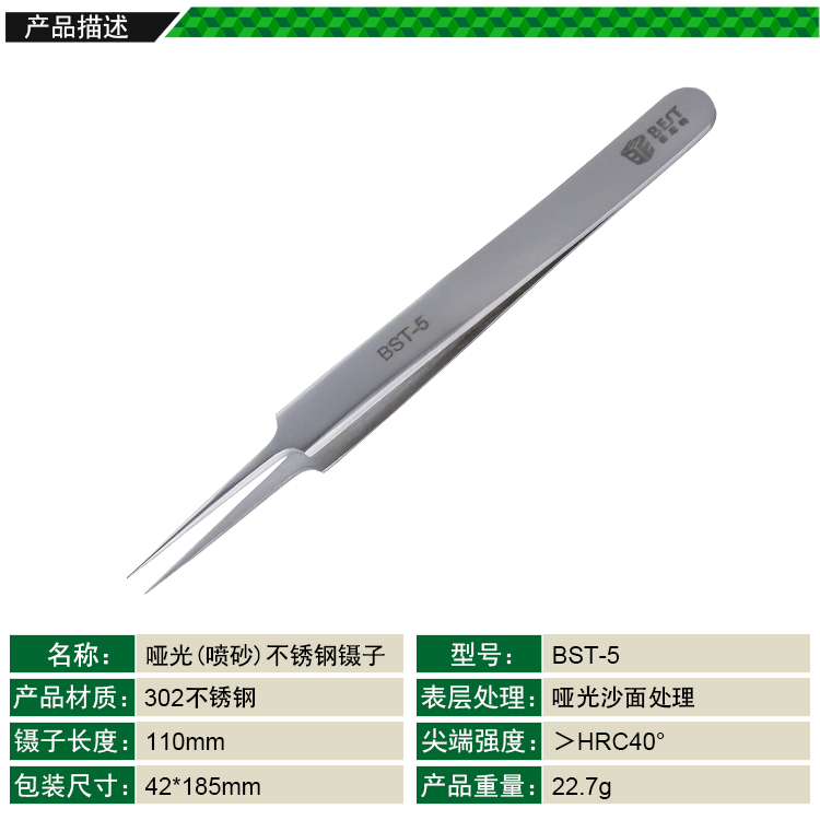 ? 产品名称: 亚光镊子 不锈钢镊子? 产品型号: BST-5? 产品类别: 镊子系列