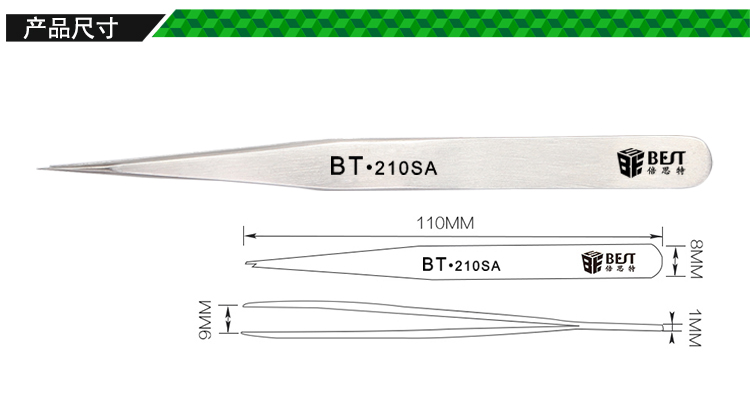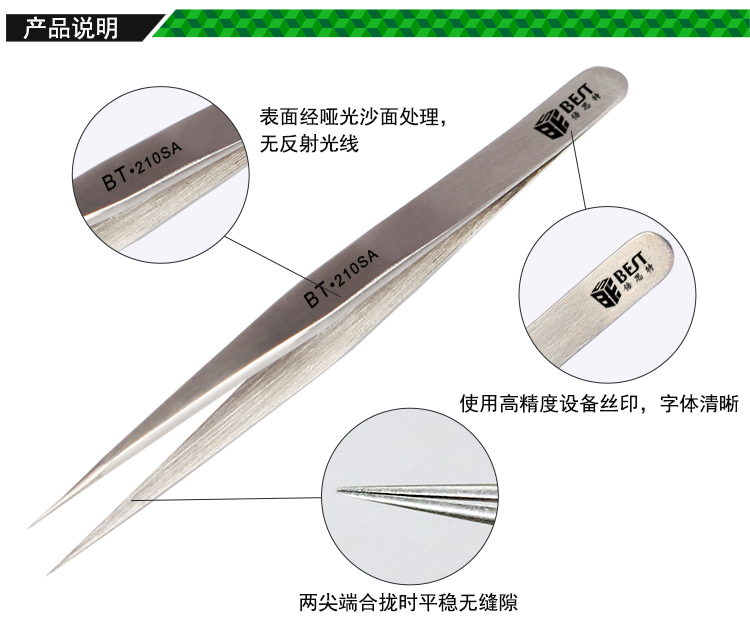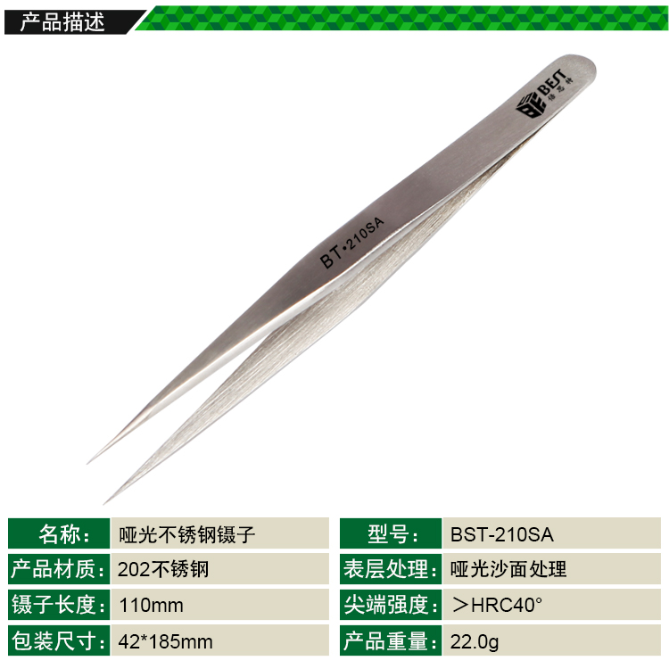 ? 产品名称: 亚光镊子 不锈钢镊子? 产品型号: BST-210SA? 产品类别: 镊子系列