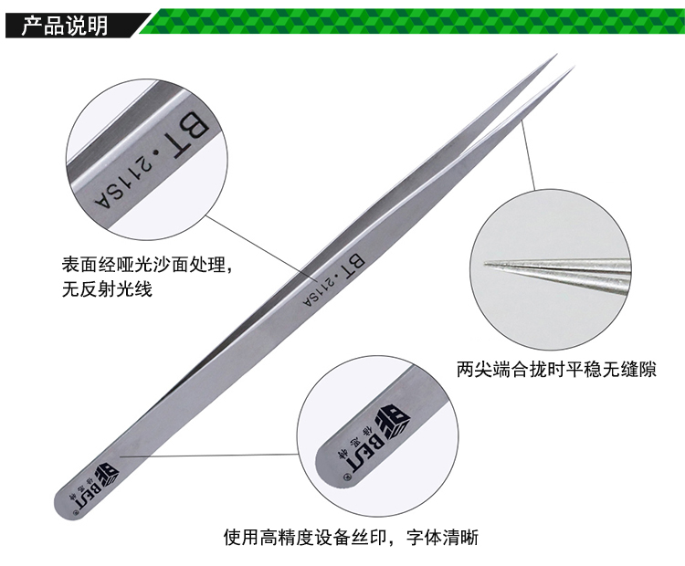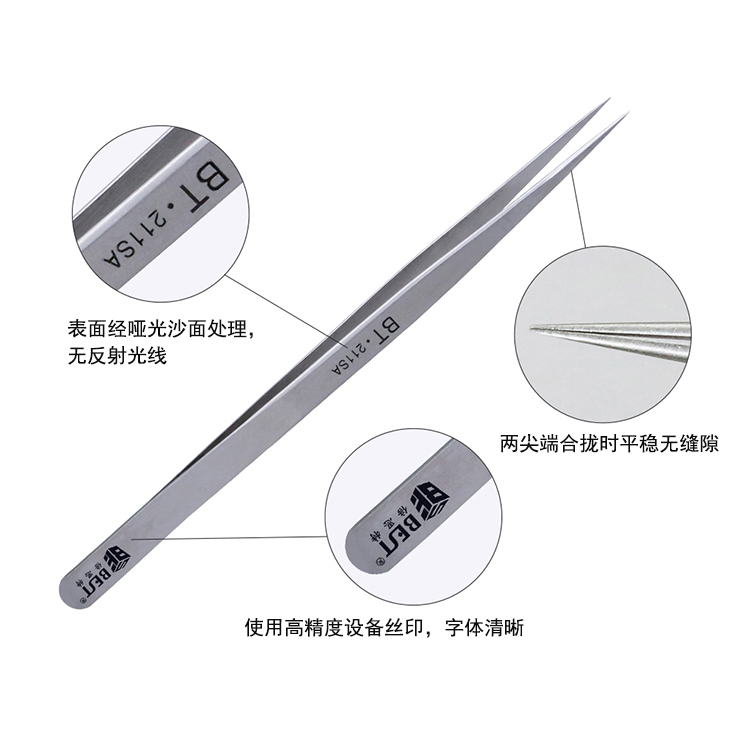 ? 产品名称: 亚光镊子 不锈钢镊子? 产品型号: BST-211SA? 产品类别: 镊子系列