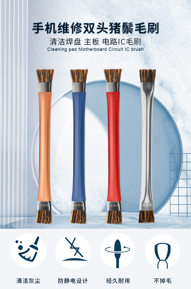 返回当前位置: 首页 / 产品中心 / BST-71 双头维修硬毛刷 手机主板IC焊盘清洁除尘不脱毛防静电猪鬃毛刷子