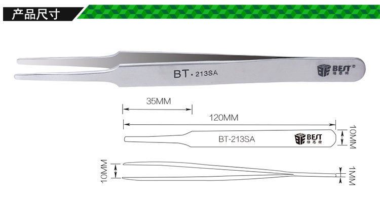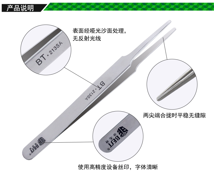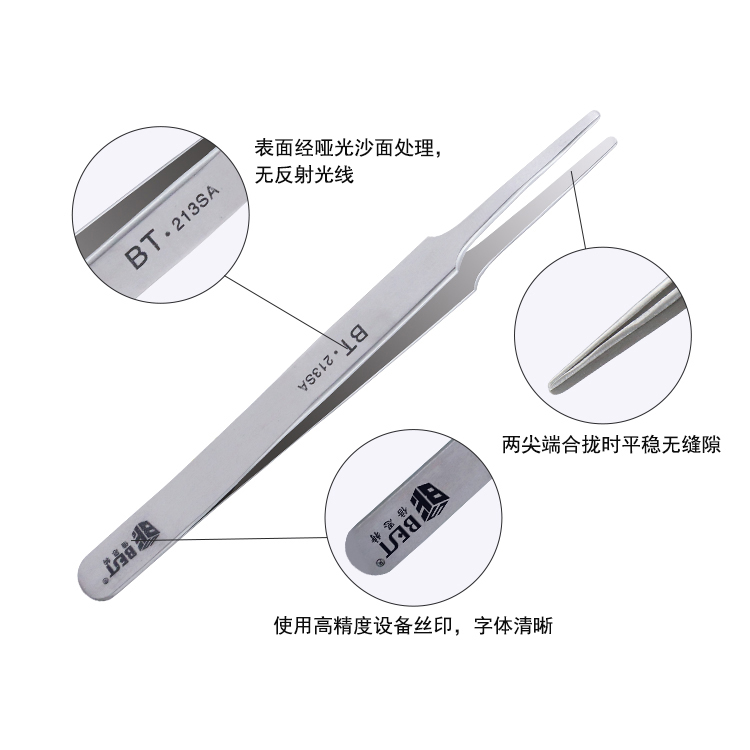 ? 产品名称: 亚光镊子 不锈钢镊子? 产品型号: BST-213SA? 产品类别: 镊子系列
