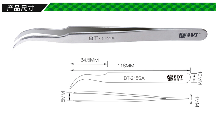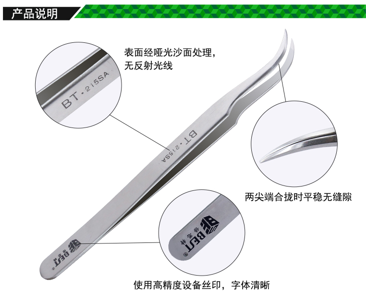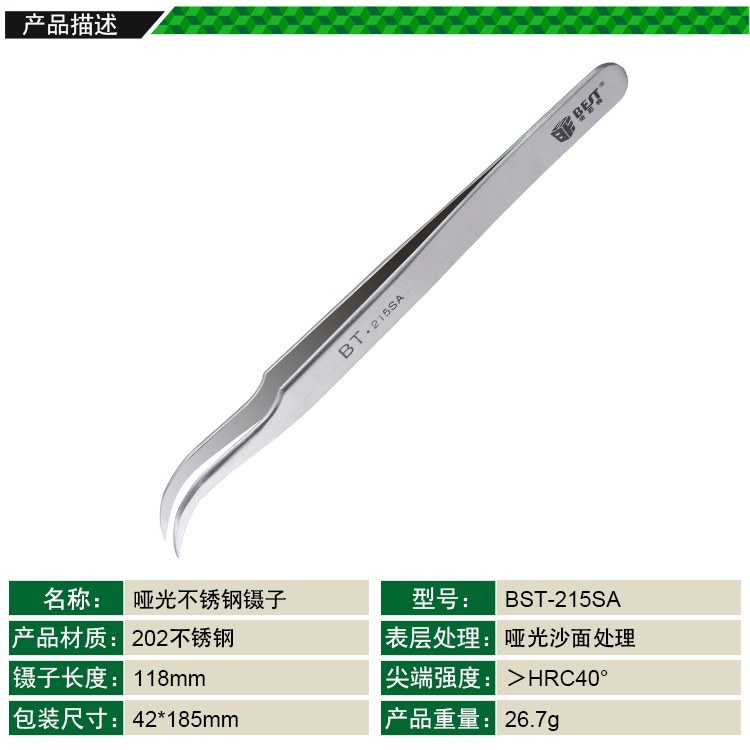 ? 产品名称: 亚光镊子 不锈钢镊子? 产品型号: BST-215SA? 产品类别: 镊子系列