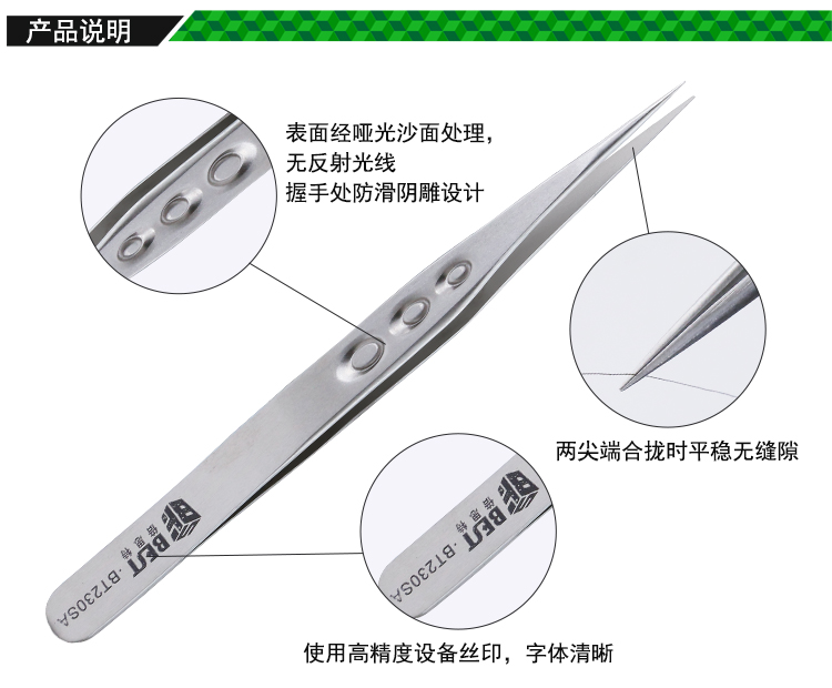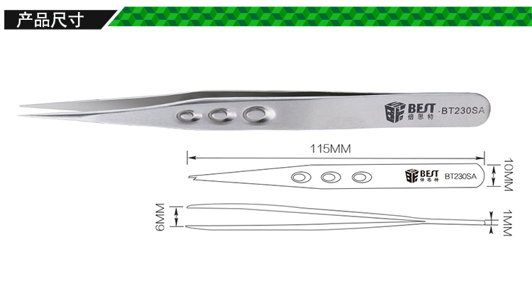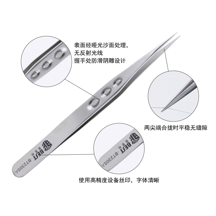 ? 产品名称: 亚光沙面镊子 不锈钢镊子? 产品型号: BST-230SA? 产品类别: 镊子系列