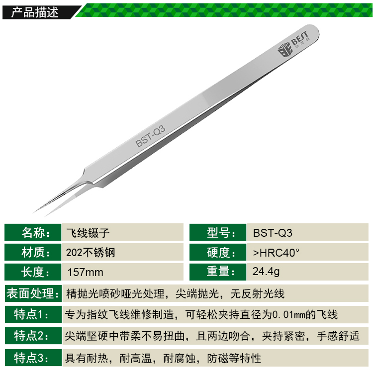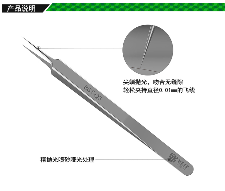 ? 产品名称: 飞线镊子 特尖镊子? 产品型号: BST-Q3? 产品类别: 镊子系列