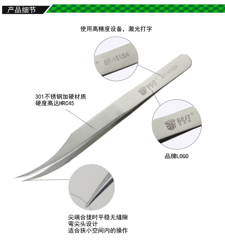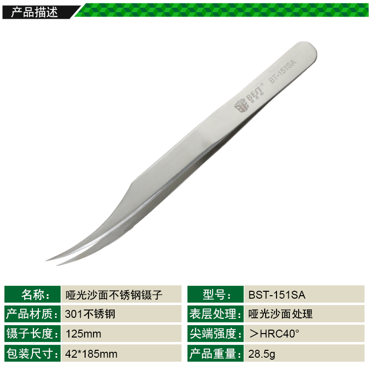 ? 产品名称: 亚光镊子 不锈钢镊子? 产品型号: BST-151SA? 产品类别: 镊子系列