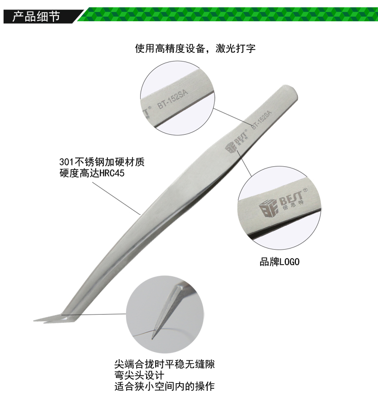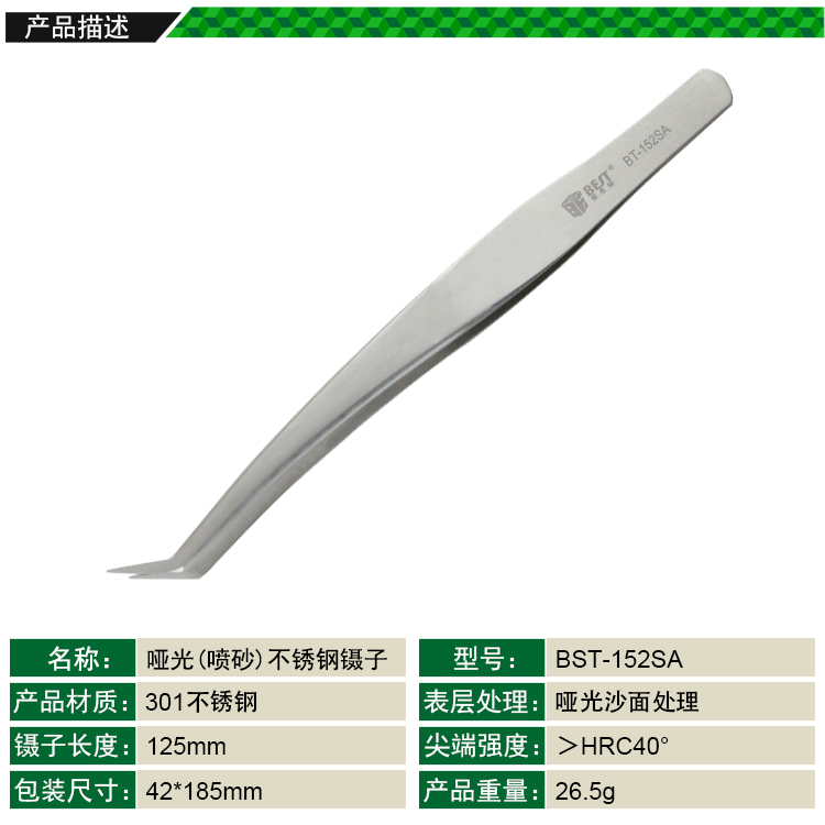 ? 产品名称: 亚光镊子 不锈钢镊子? 产品型号: BST-152SA? 产品类别: 镊子系列