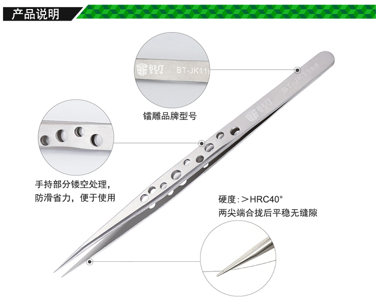 ? 产品名称: 亚光镂空镊子? 产品型号: BST-JK11sa? 产品类别: 镊子系列