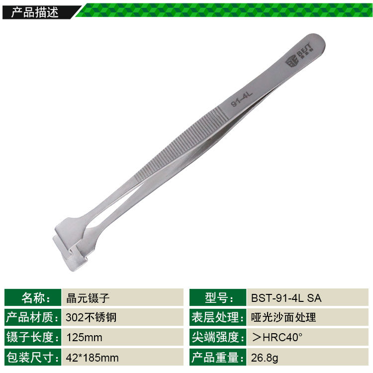 ? 产品名称: 晶元镊子? 产品型号: BST-91-4L? 产品类别: 镊子系列