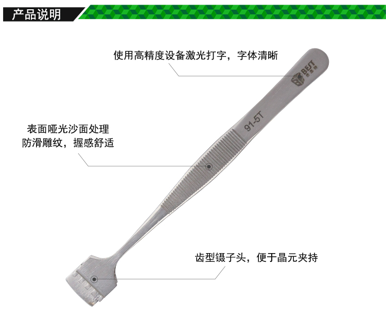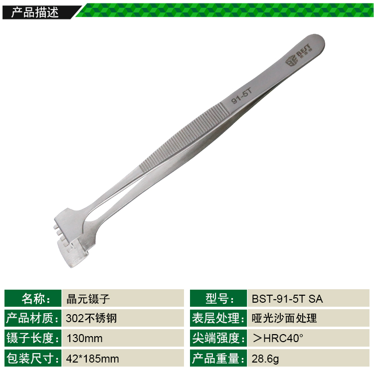 ? 产品名称: 晶元镊子? 产品型号: BST-91-5T? 产品类别: 镊子系列