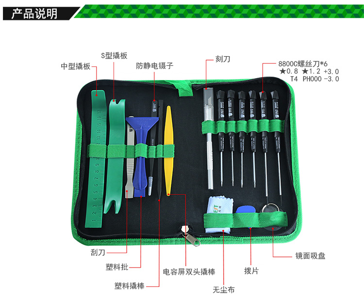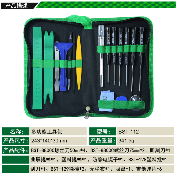 ? 产品名称: 多功能手机拆机工具包? 产品型号: BST-112? 产品类别: 拆机工具系列